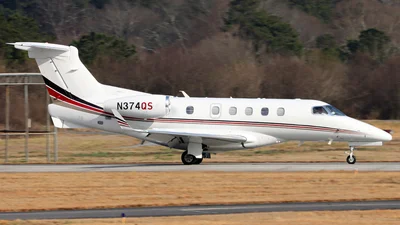 Tail number N374QS is an Embraer Phenom 300, a light business jet known for its range, speed, and executive-class cabin.