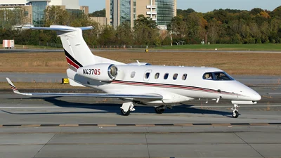 Tail number N437QS is an Embraer Phenom 300, a light jet known for its speed, efficiency, and stylish design.