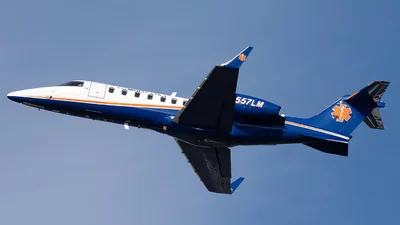Tail number N557LM is a Bombardier Learjet 45XR, a light jet prized for its performance, reliability, and comfortable cabin.