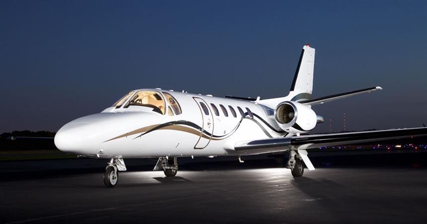 Tail number N579M is a Cessna Citation S/II (Model 550), a trusted light business jet valued for its reliable performance, efficient range, and comfortable cabin. Ideal for corporate or private charter operations, it features a refreshment center and an enclosed lavatory.